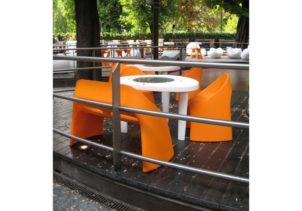 Amélie designed by Italo Pertichini for Slide is a chair made of polyethylene, worked with the rotational moulding technique. The added, innovative benefit of stackability solves all space-related problems, increasing the products practicality and versatility. Available in different finishes.