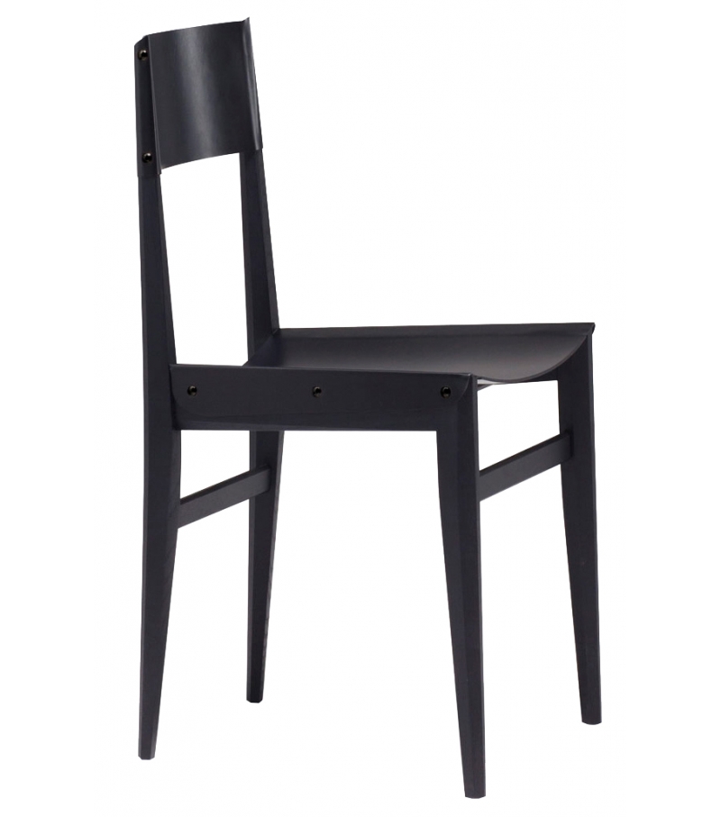 Milvia designed by Studiopepe for Ivano Redaelli is a chair with structure in black ash or oak. The seat and back are covered in full-grain leather fixed with brass-finish metal studs. Milvia is available in different structure and covering finishes.