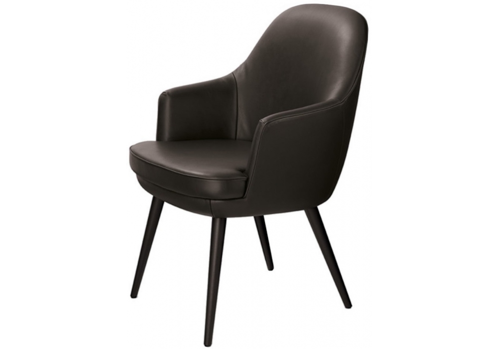 375 designed for Walter Knoll is a chair with backrest and seat upholstered with foam and an outer layer of wadding. Wooden base available in different finishes. Cover available in multiple fabrics and leathers. Also available in two models.