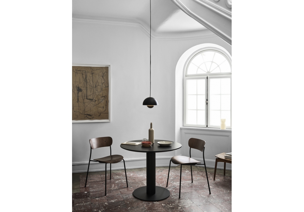 Pavilion designed by Anderssen & Voll for &Tradition is a stackable chair with or without armrests, made with bent steel tubes and press-bent veneer. The veneered back and seat are finished with a PU lacquer. Available in different finishes.