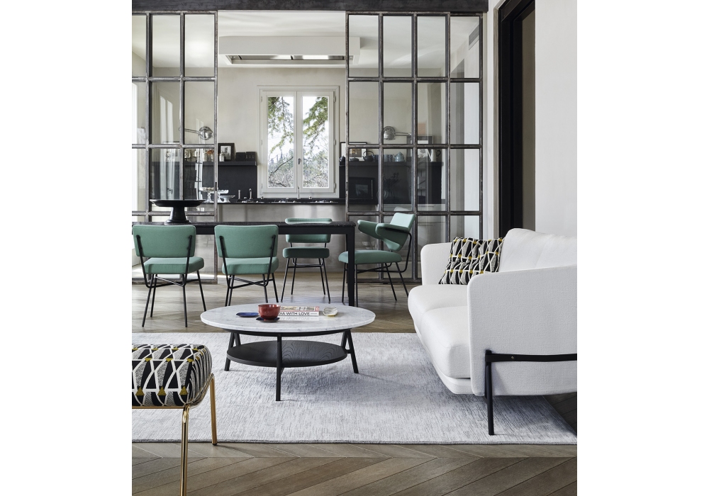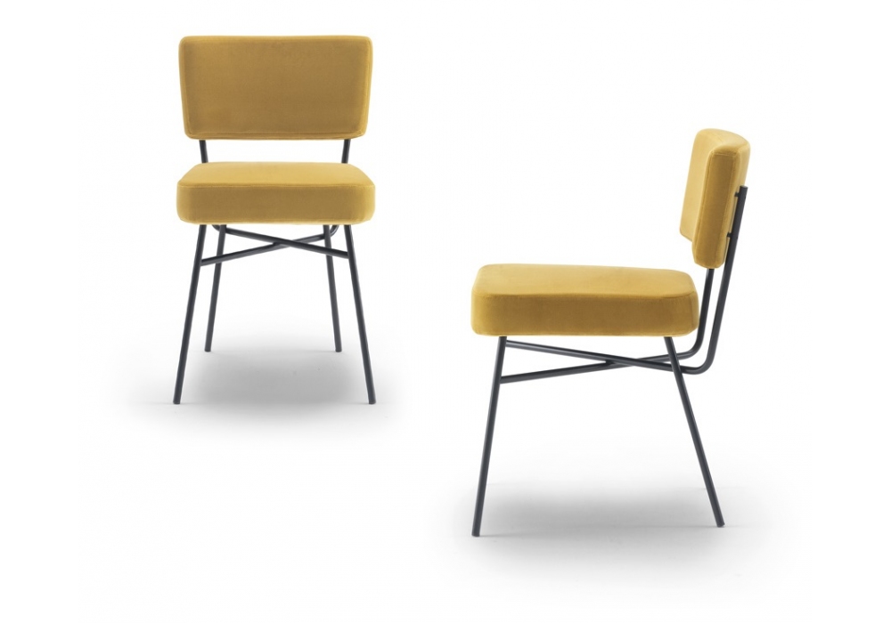 Elettra designed by B.B.P.R for Arflex is a chair with structure in black lacquered metal. Upholstery in removable fabric or non-removable leather.