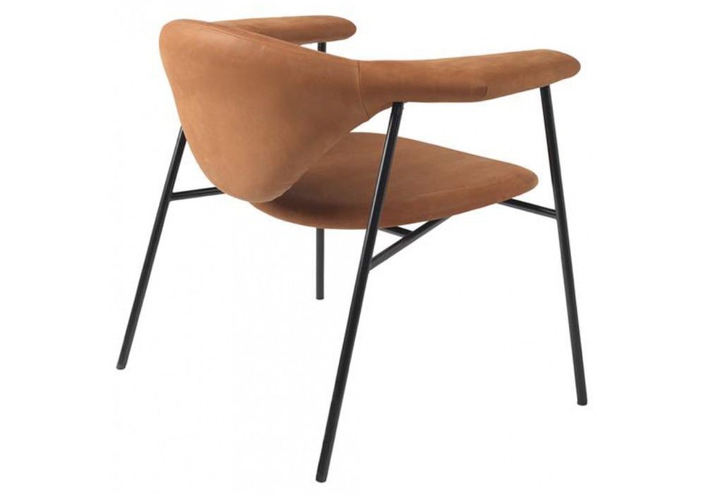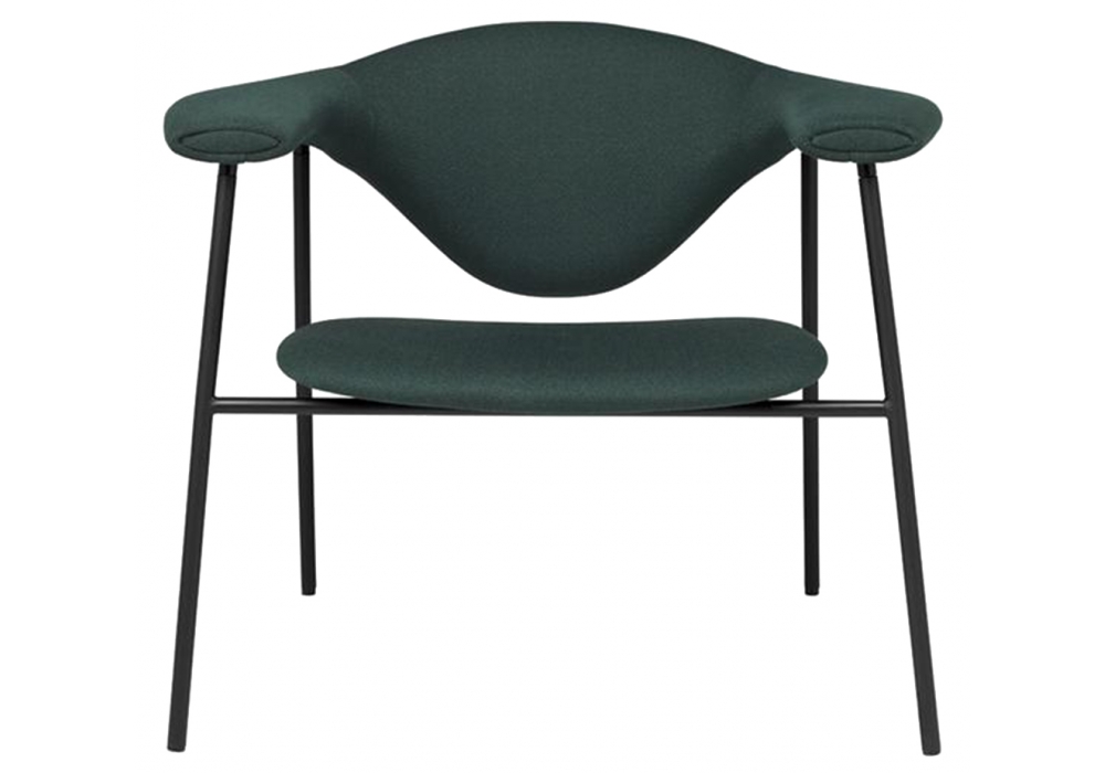 Masculo designed by GamFratesi for Gubi is a lounge chair with black steel powder coated base and upholstery available in fabric or leather.
