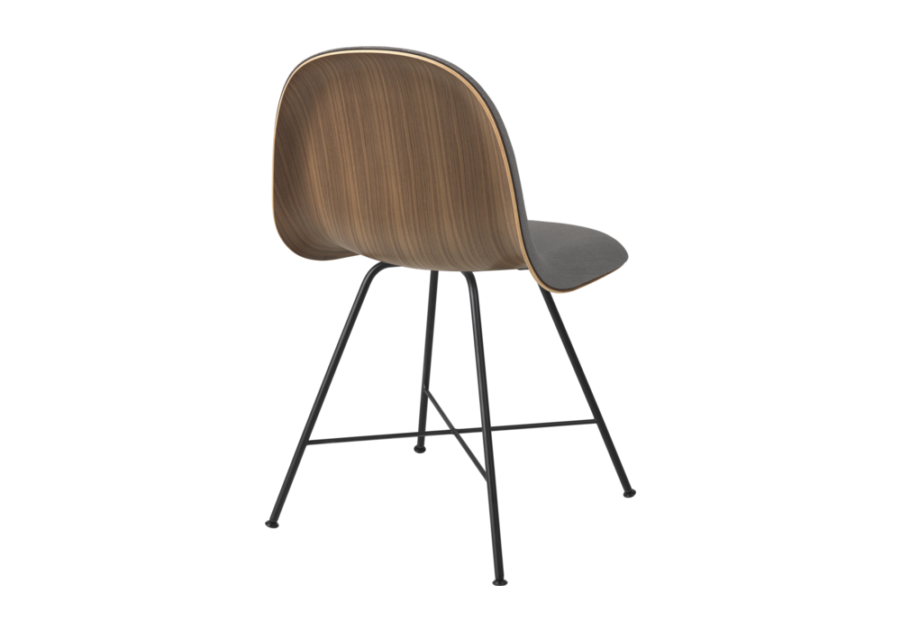 3D designed by Komplot Design for Gubi is a chair with wood shell and black metal base. Upholstery available in fabric or leather.