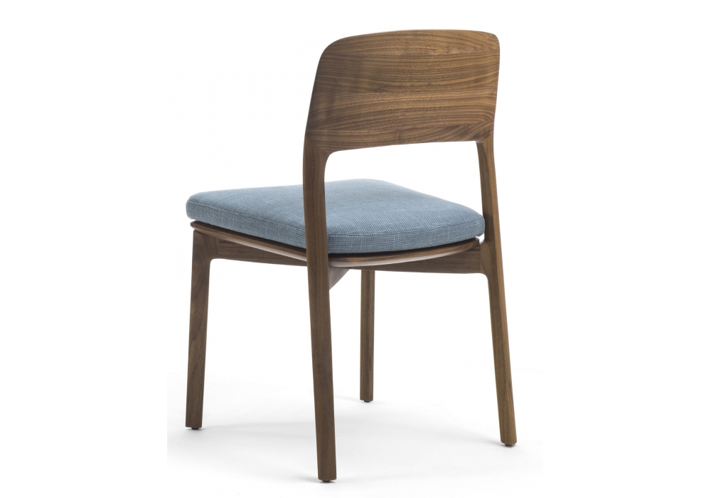 Emma designed by Patrick Jouin for Porada is a chair in canaletto walnut with upholstered seat in fabric or leather.