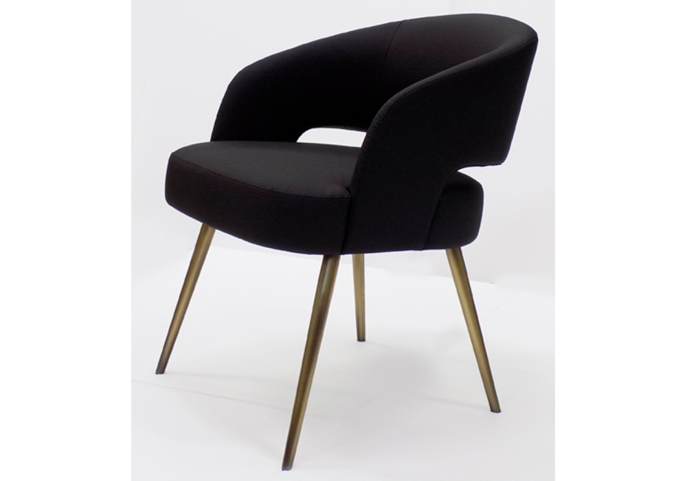 Thalis designed by Giuliano Cappelletti for Emmemobili is an upholstered chair available in different finishes. Legs in tapered brass.