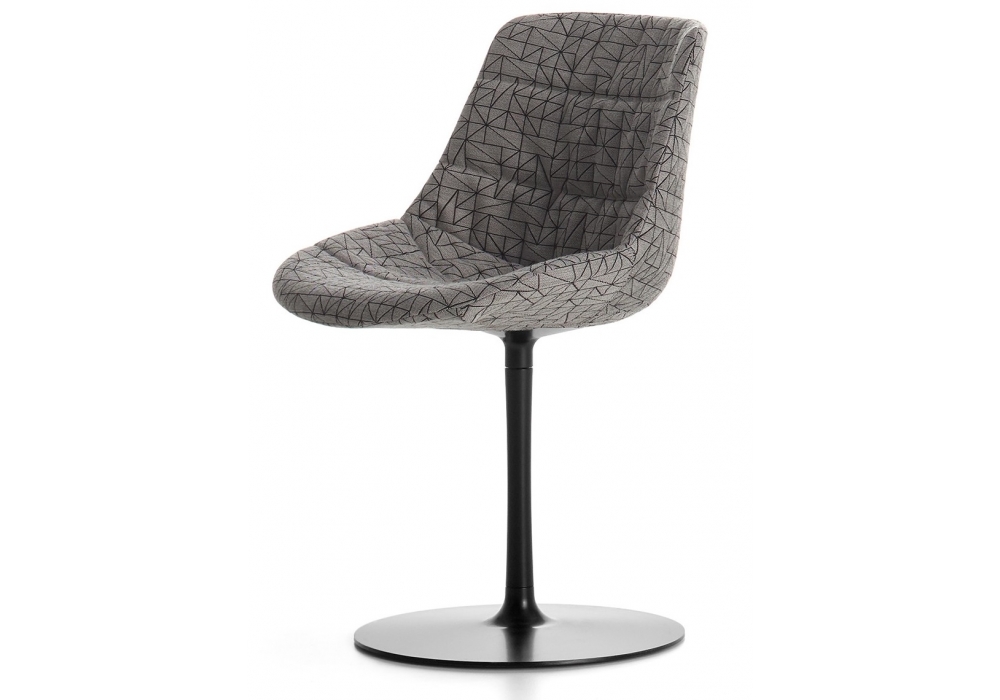 Flow Textile designed by Jean Marie Massaud for MDF Italia is a chair with upholstered shell with polyurethane mattress and removable fabric cover. The base is a stem, made of aluminum painted with epoxy powders in the opaque colors. 360 ° rotatable. Available in two models.