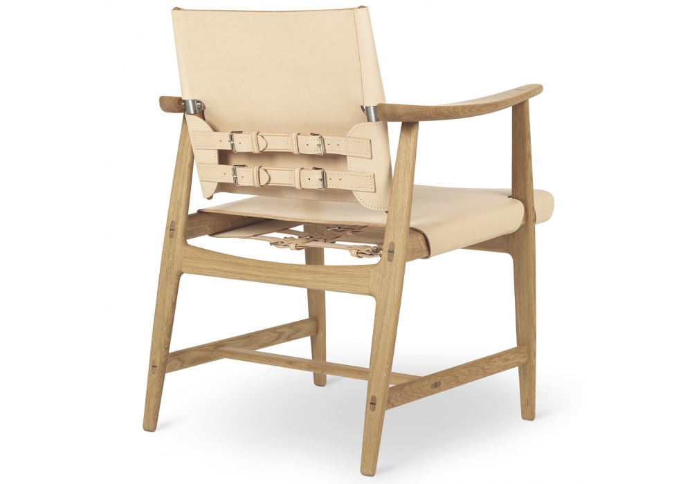 BM1106 Huntsman Chair designed by Børge Mogensen for Carl Hansen & Søn is a chair with wooden structure available in different finishes. Supports in stainless steel or brass. Seat and backrest in leather. The dowels on the legs are always in contrasting finish.