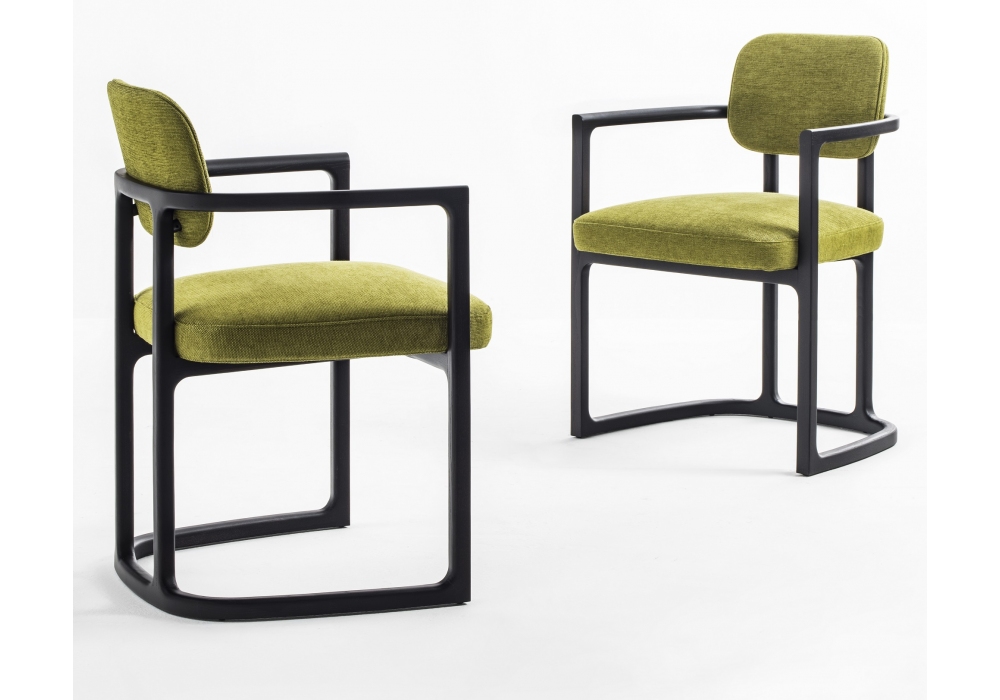 Serena designed by Emmanuel Gallina for Porada is a chair with structure in solid ash wood available in the following finishes: natural, stained or open pore matt lacquered. Covering in leather or fabric.