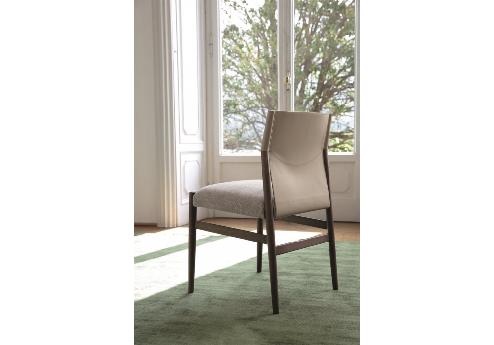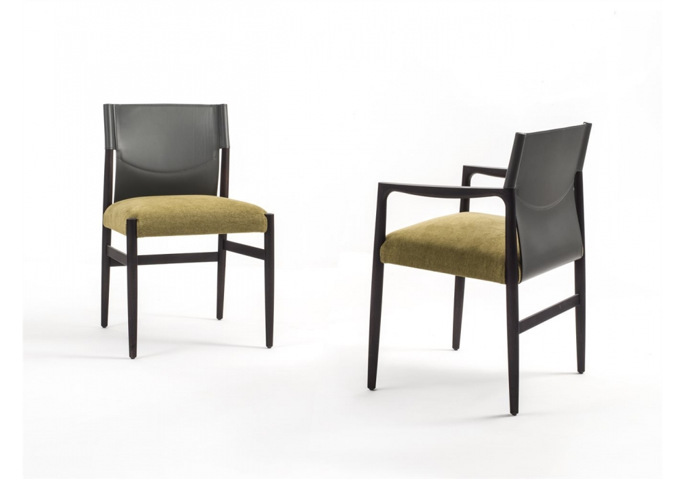 Sveva designed by G. & O. Buratti for Porada is a chair with backrest in Cuoietto leather. Structure in solid ash wood available in the following finishes: natural, stained or open pore matt lacquered. Covering in leather or fabric. Proposed with or without armrests.