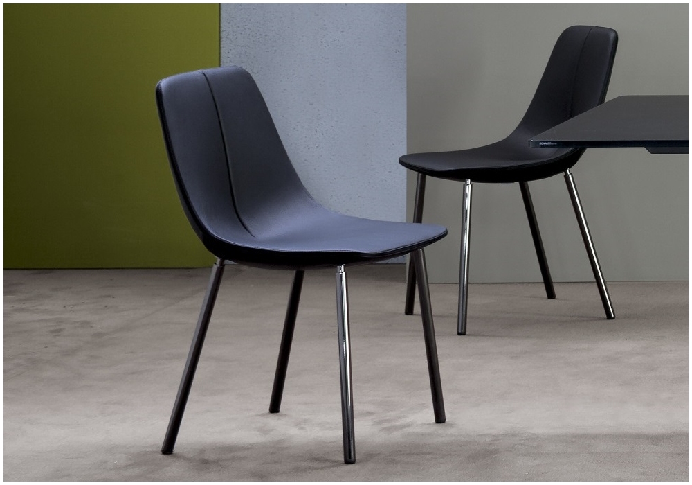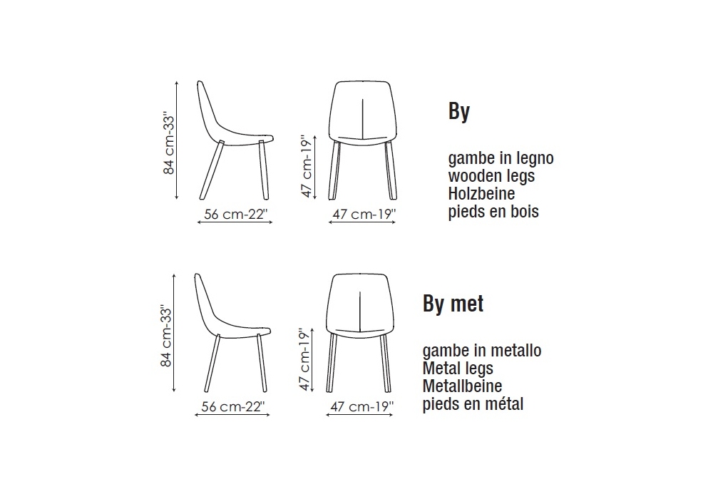 By designed by Bartoli Design for Bonaldo is a padded chair with upholstery in leather, eco-leather or fabric. Legs made of wood or metal (By met), available in different finishes.