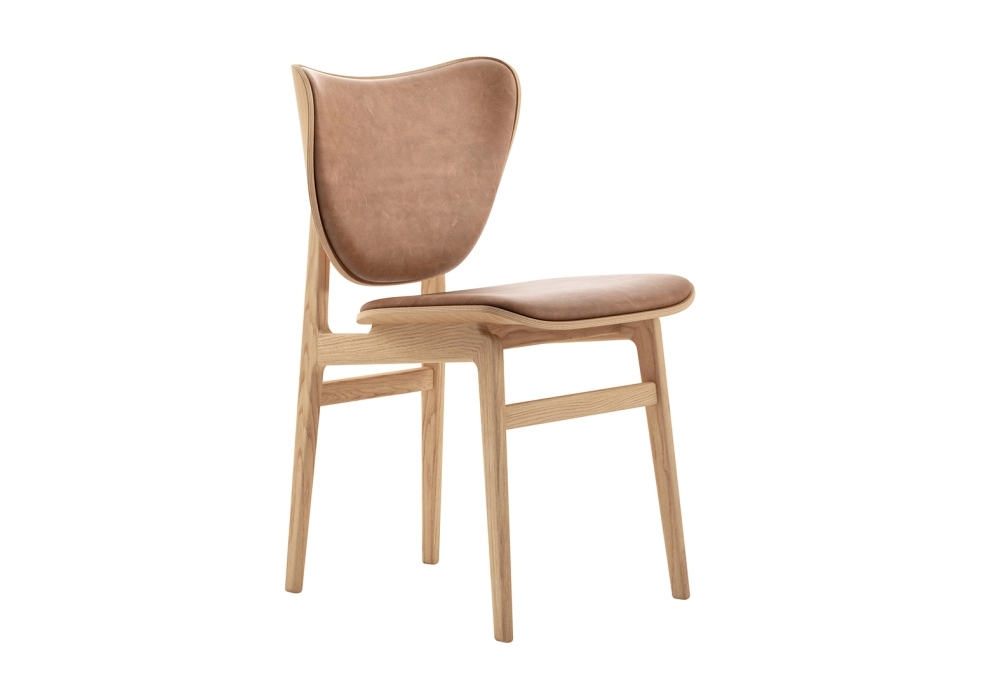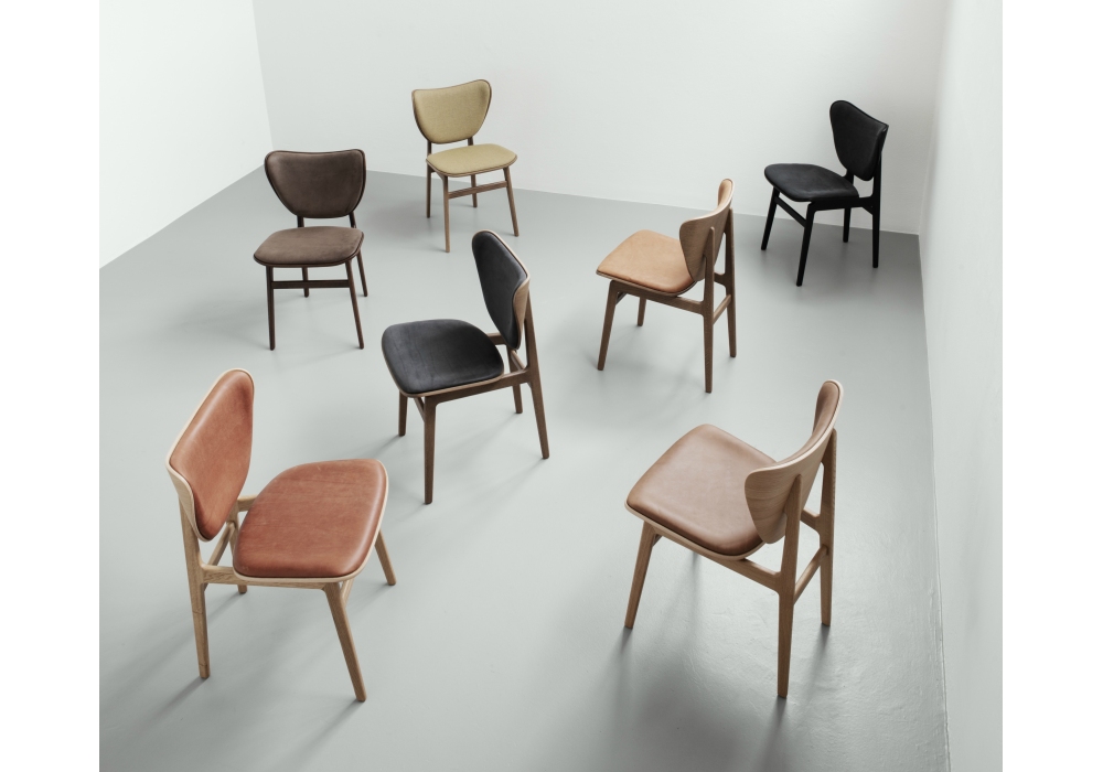 Elephant Dining designed by Kristian Sofus Hansen and Tommy Hyldahl for Norr11 is a chair with solid oak structure. Available in different frame variants: Natural, dark and black stained. The seat can be covered in fabric or leather.