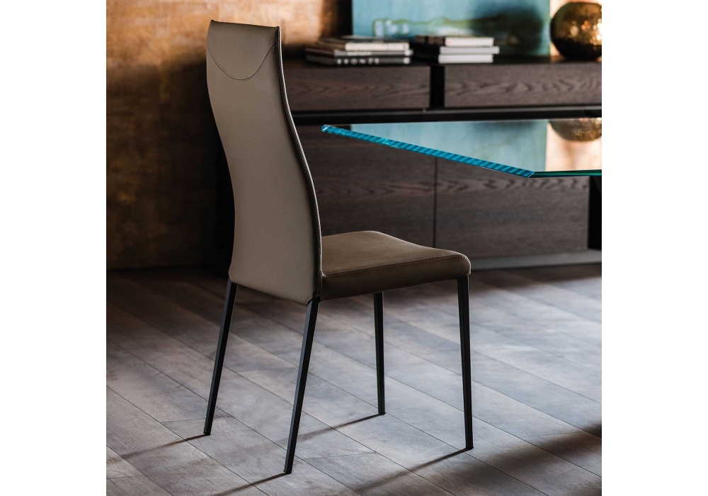 Anna designed by Studio Kronos for Cattelan Italia is a chair with steel structure and upholstery in leather, eco-leather or fabric. Available in 4 models. Removable covering in fabric.