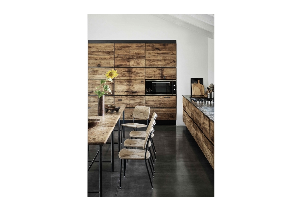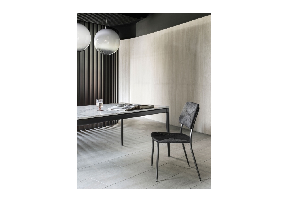 First Steps designed by Cristophe Pillet for Flexform is a chair. Metal frame. Seat and backrest in straw or cord.