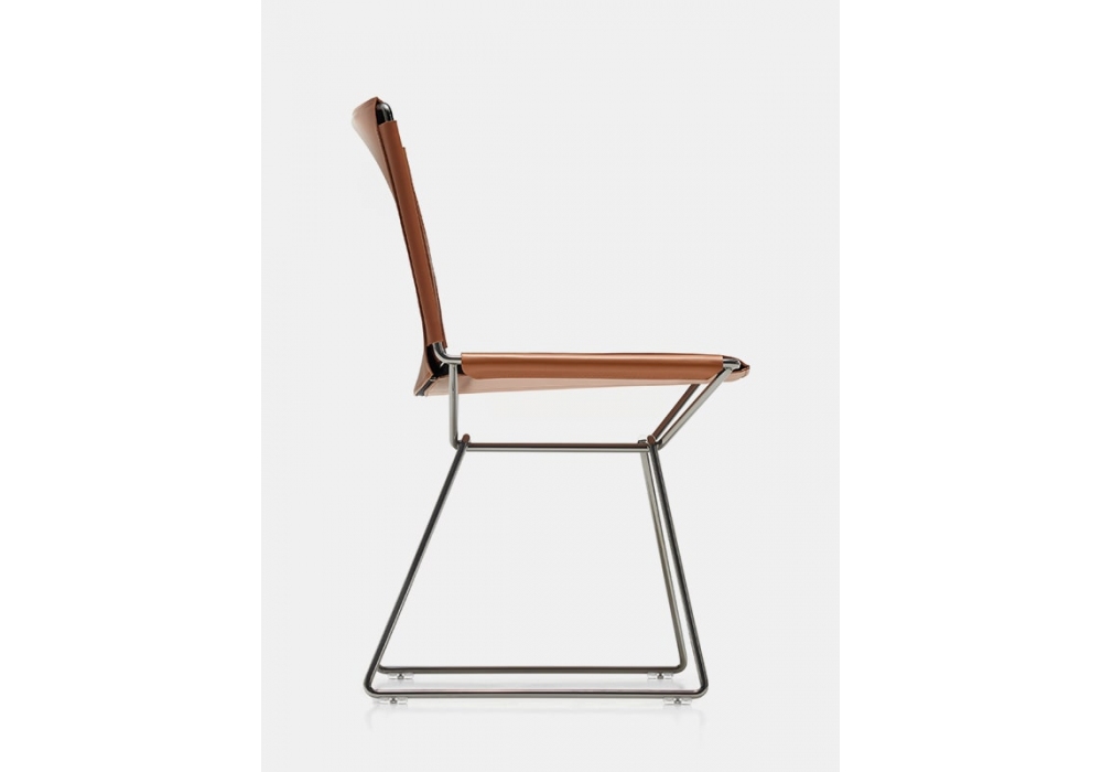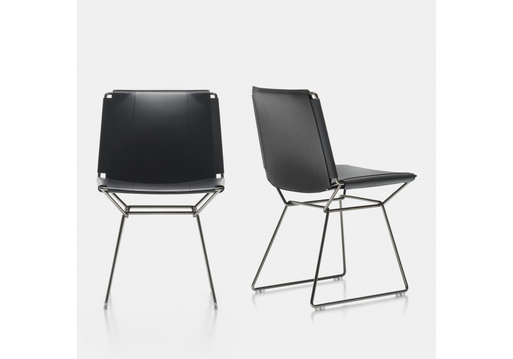 Neil Leather Chair designed by Jean Marie Massaud for MDF Italia is a chair with load-bearing structure made of steel in black chrome finish, and the shell in leather in different finishes.