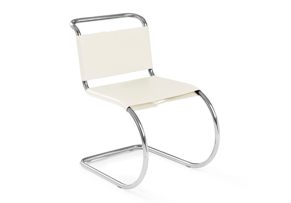 MR designed by Ludwig Mies van der Rohe for Knoll is a chair with a polished chrome-plated tubular structure or with ultra-matt epoxy paint. Upholstery with leather straps with leather back laces.