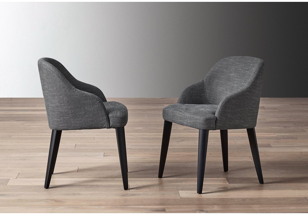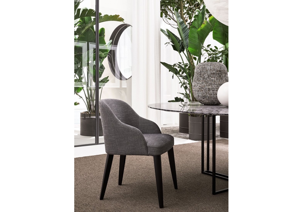 Odette Due designed by Andrea Parisio for Meridiani is a chair with frame in POLIMEX® and legs in stained oak veneer. Upholstery available in fabric and leather.
