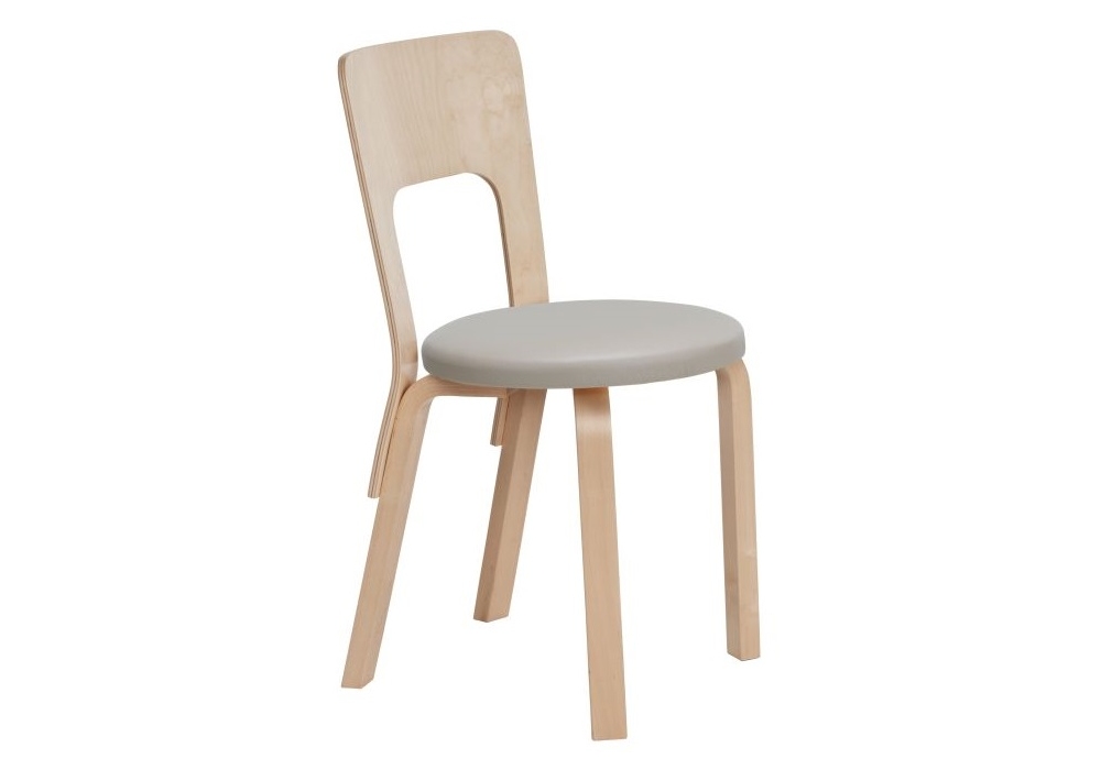 Chair 66 designed by Alvar Aalto for Artek is a chair made with seat upholstery in fabric or leather. Legs and backrest lacquered. Available in different finishes.