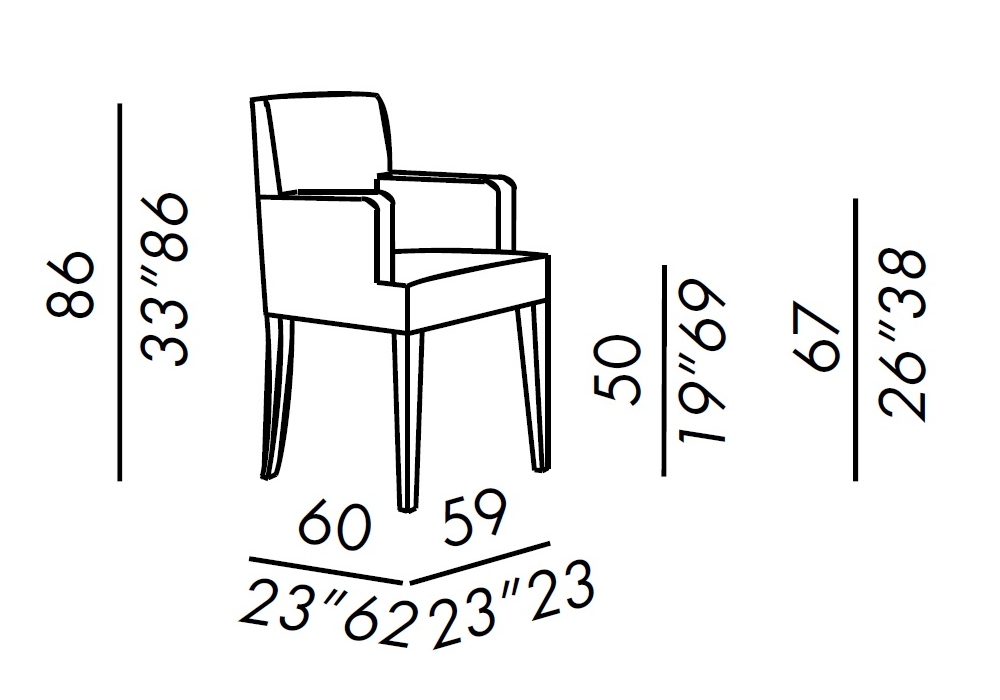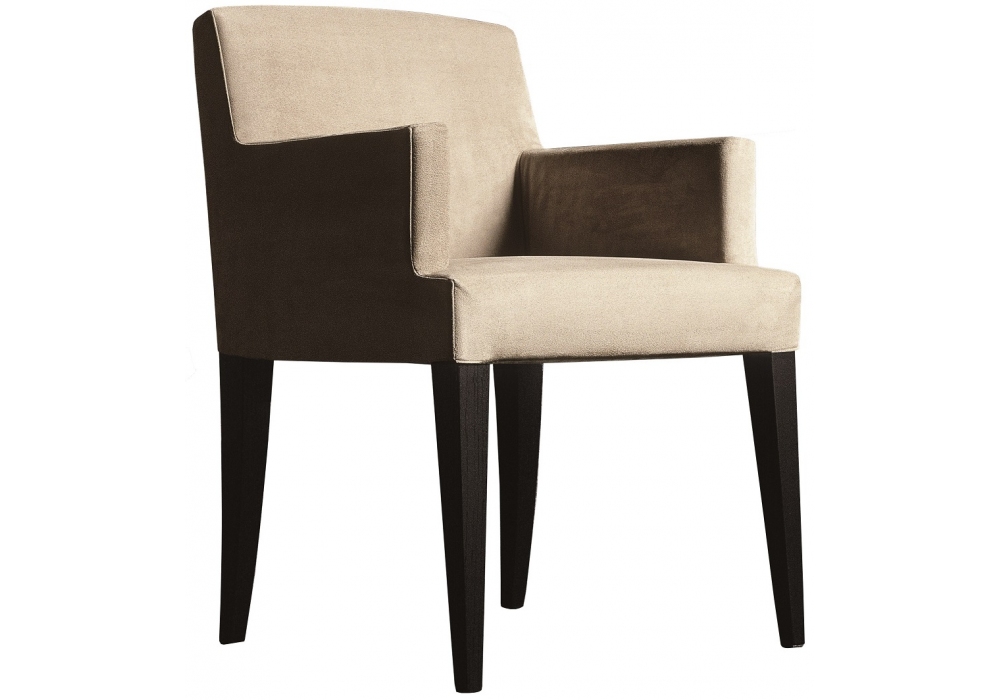 Cruz Tre designed by Andrea Parisio for Meridiani is a chair with armrests. Frame in moulded polyurethane foam with metalinsert - flexible back. Legs in stained oak. Upholstery available in fabric or leather.