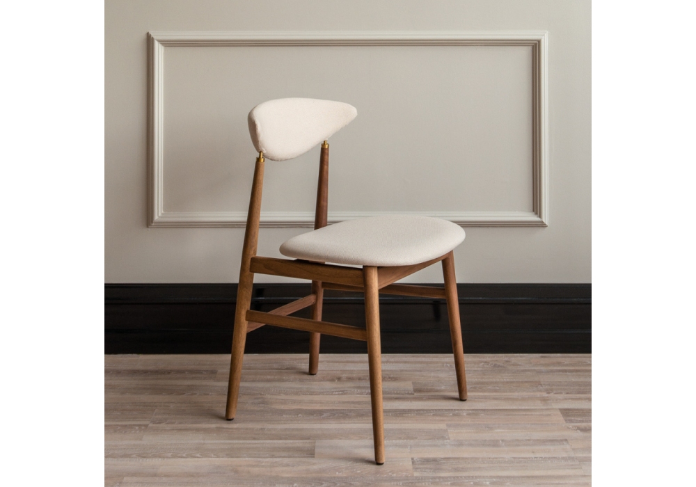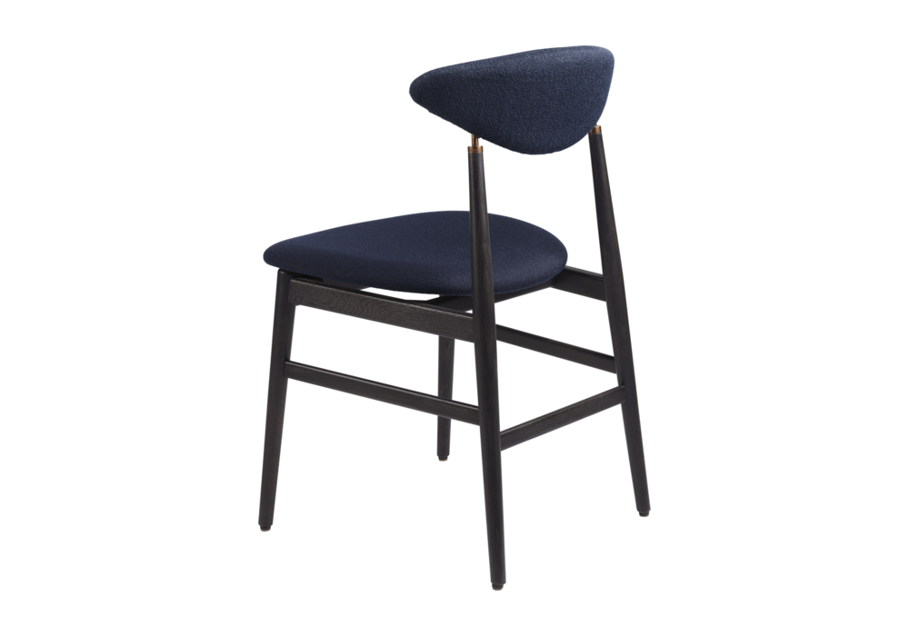 Gent designed by GamFratesi for Gubi is a dining chair composed of a wooden frame and upholstered seat and back in leather or fabric.
