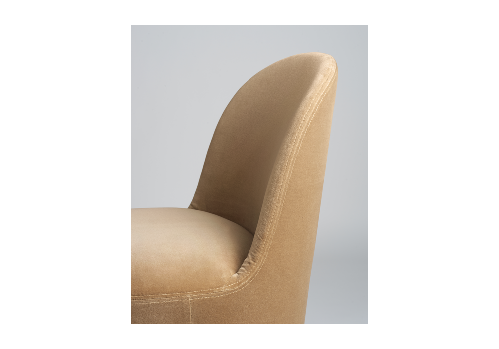 Tail designed by GamFratesi for Gubi is a fully padded chair upholstered with fabric or leather. It is available with high or low back.