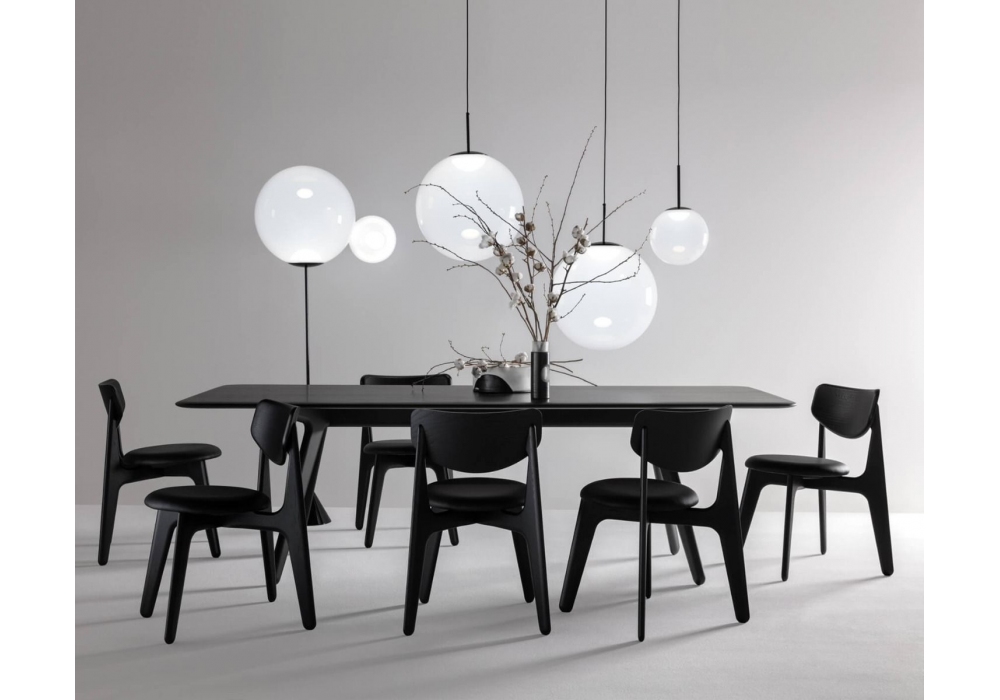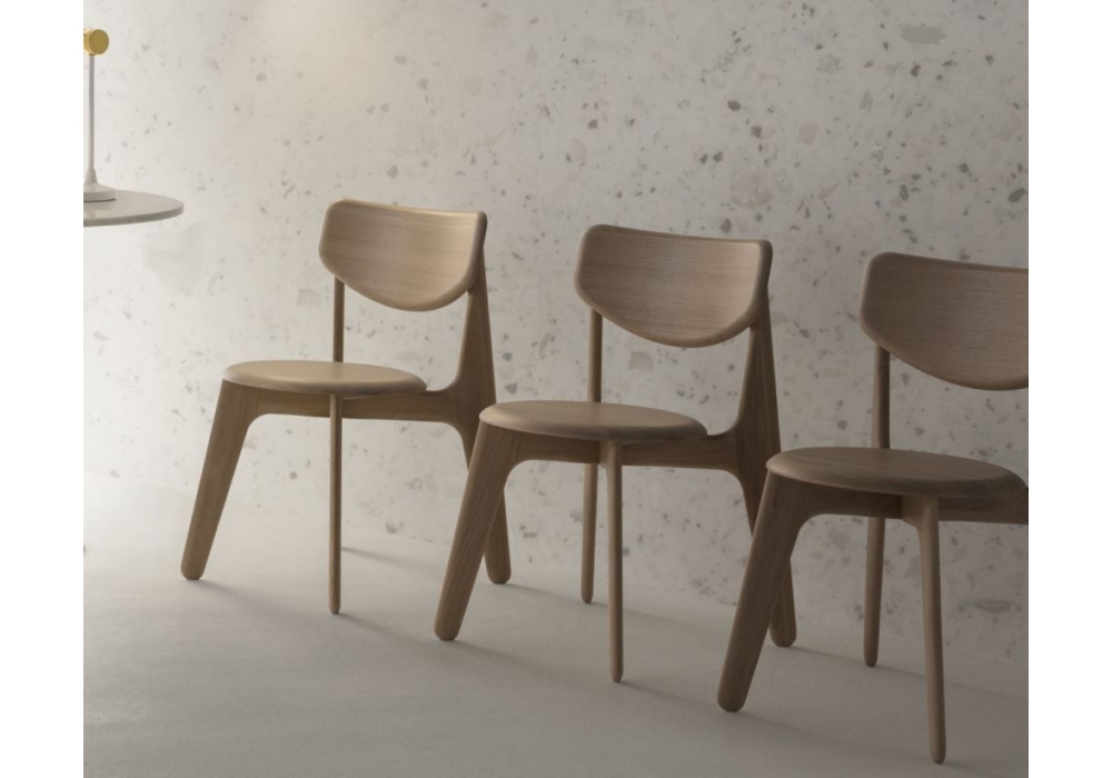 Slab Dining designed by Tom Dixon is a chair in solid oak wood in different finishes. The chair is also available with an upholstered seat with black leather upholstery.