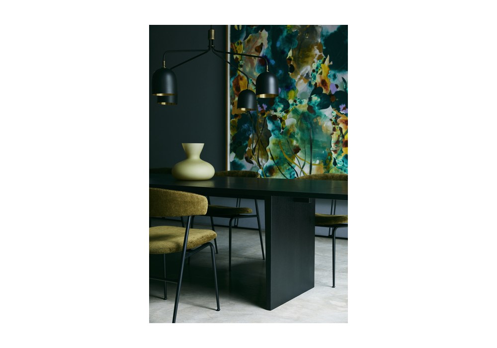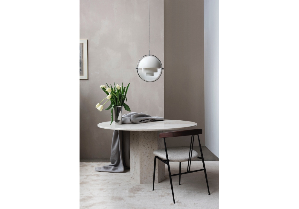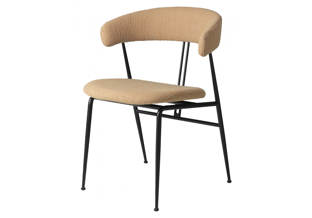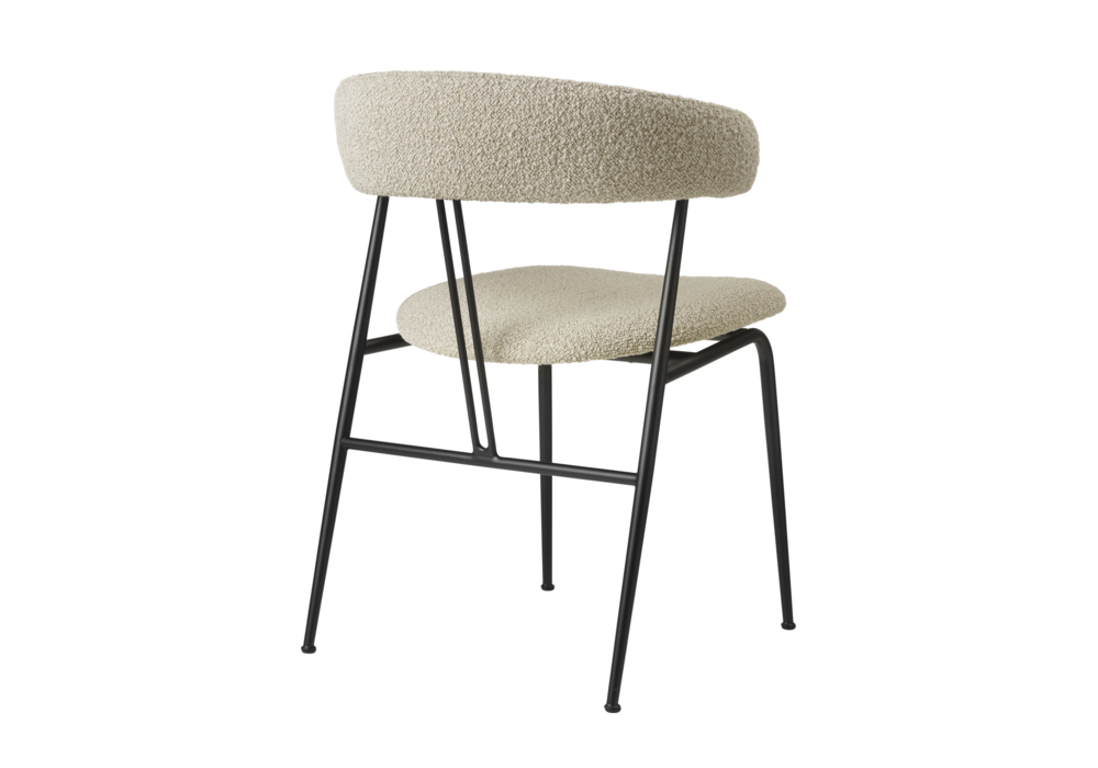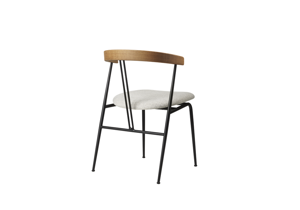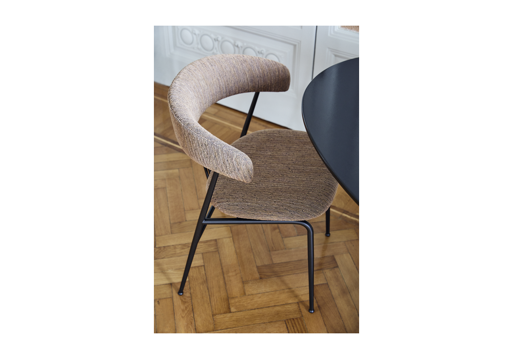 Violin designed by GamFratesi for Gubi is a chair composed of metal structure, fabric or leather upholstered seat and American walnut or oak backrest. The chair is also available with upholstered backrest.
