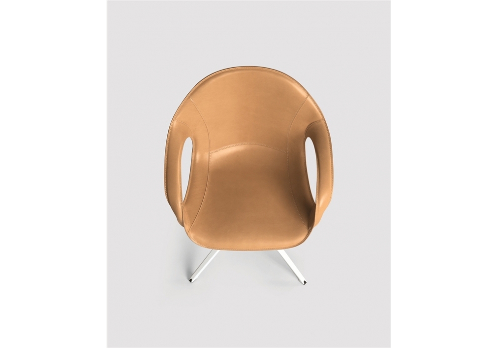 Elephant designed by Eva Paster & Michael Geldmacher for Kristalia is a chair with swivel trestle in aluminum available in different finishes and polyurethane shell with upholstery in hide-leather, "full grain" hide-leather or fabric.