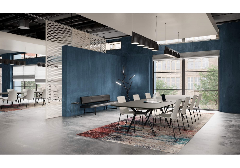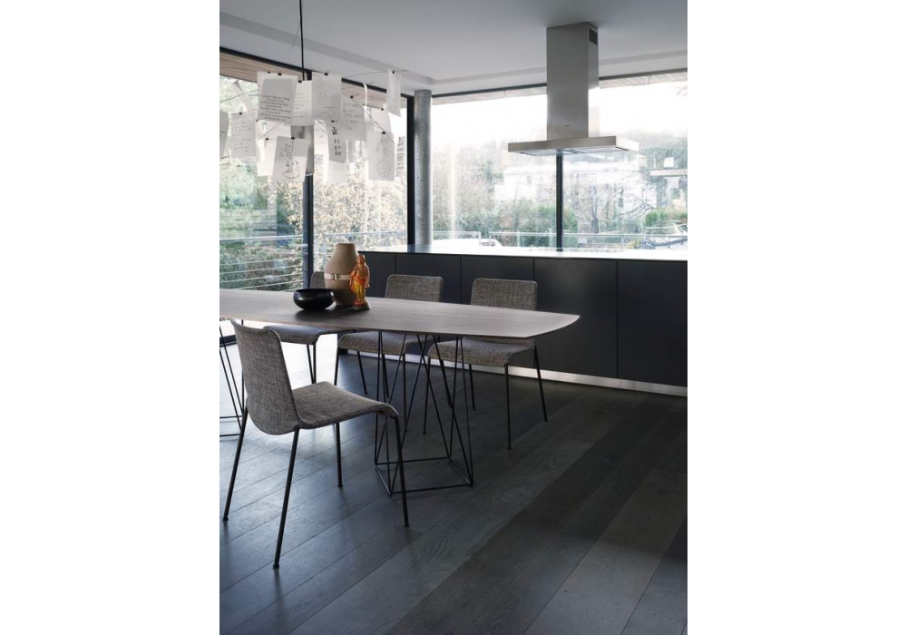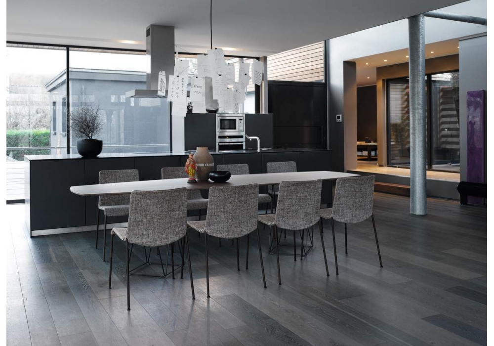 Liz designed by Claudio Bellini for Walter Knoll is a chairs collection with four-legged base in varnished or polished chromed steel. Covering in fabric or leather. Available with low or high backrest, with or without armrests and tufted version.
