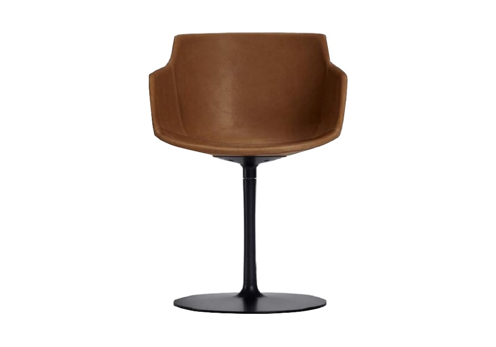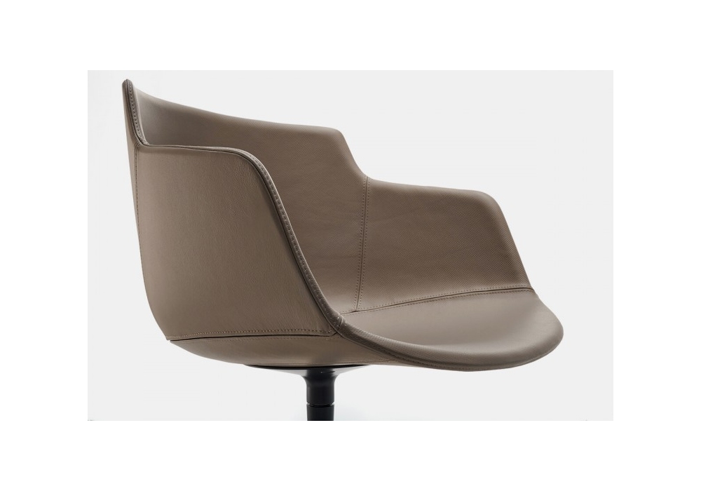 Flow Leather designed by Jean Marie Massaud for MDF Italia is a chair with stem base, made of aluminum painted with epoxy powders in various matt colours. The upholstery is in aniline leather (punched external shell, smooth internal) or Nuvola (smooth external shell, punched internal) in different finishes. 360° rotatable.
