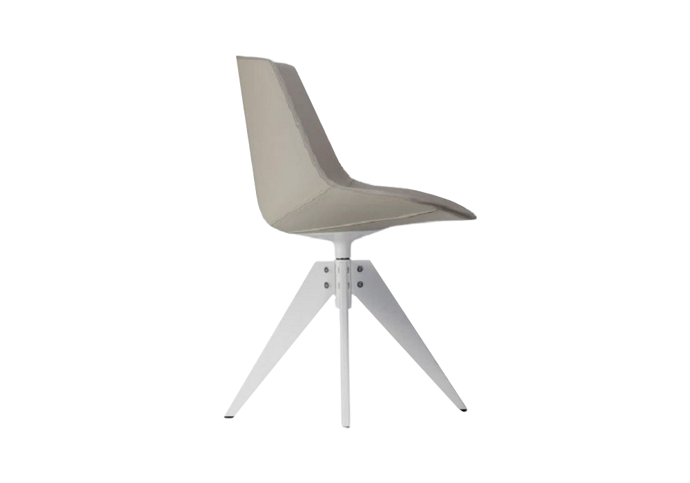 Flow Leather designed by Jean Marie Massaud for MDF Italia is an upholstered chair, with polycarbonate shell completely covered in leather (not removable), with base consisting of 4 steel VN legs, in folded sheet, painted white and matt graphite gray, with support aluminum coupling supplied in the same color. 360 ° rotatable.