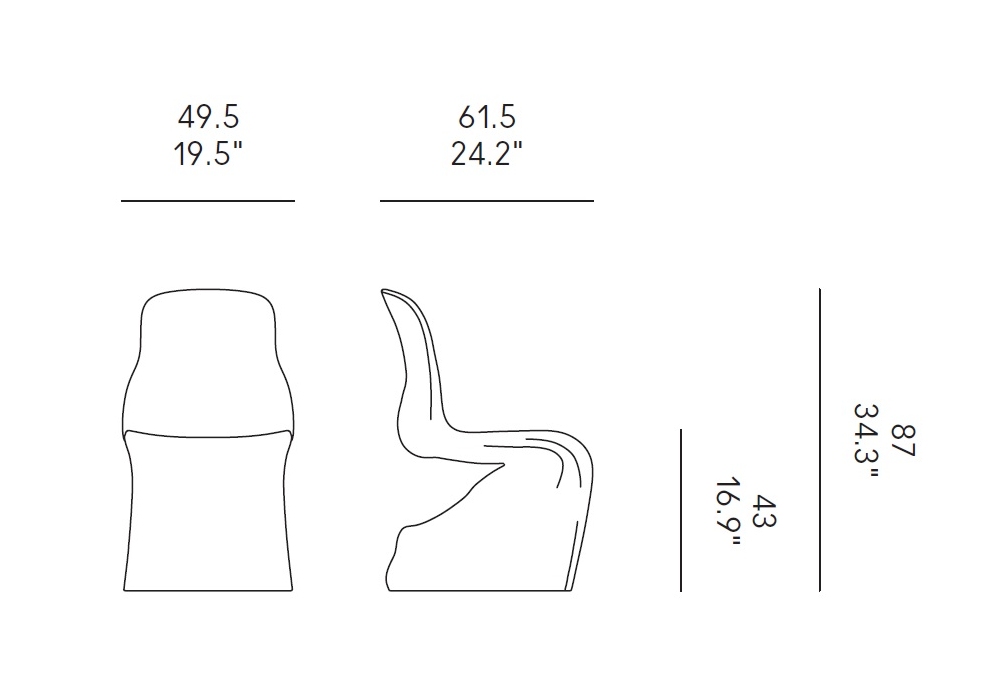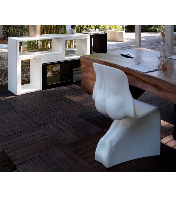 Him designed by Fabio Novembre for Casamania is part of a collection of polyethylene seats made by rotational molding. Their shape derives from the three-dimensional scanning of two plaster sculptures. Available in two finishes: mass-dyed opaque polyethylene or glossy painted polyethylene. The basic version, in opaque polyethylene, can also be used outdoors.