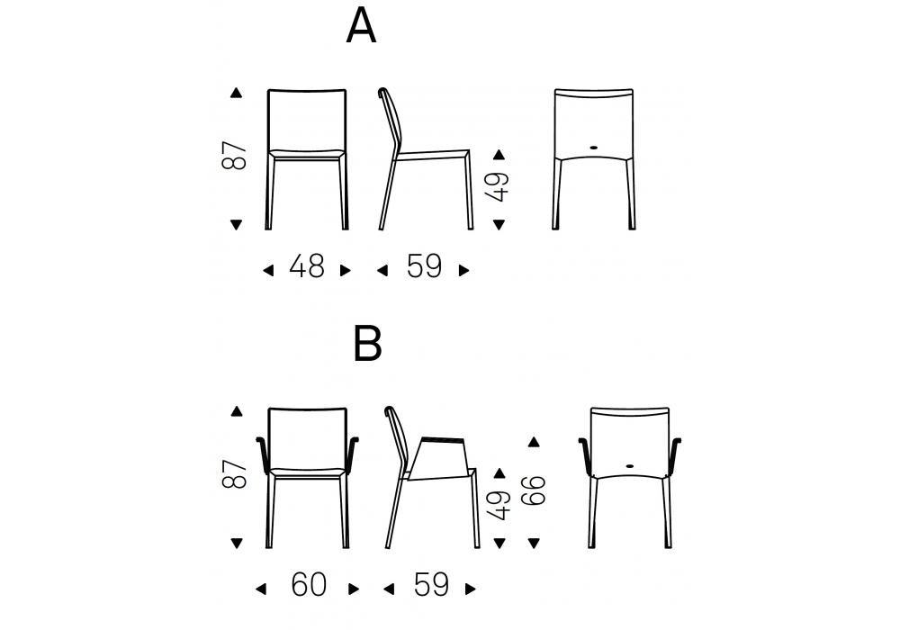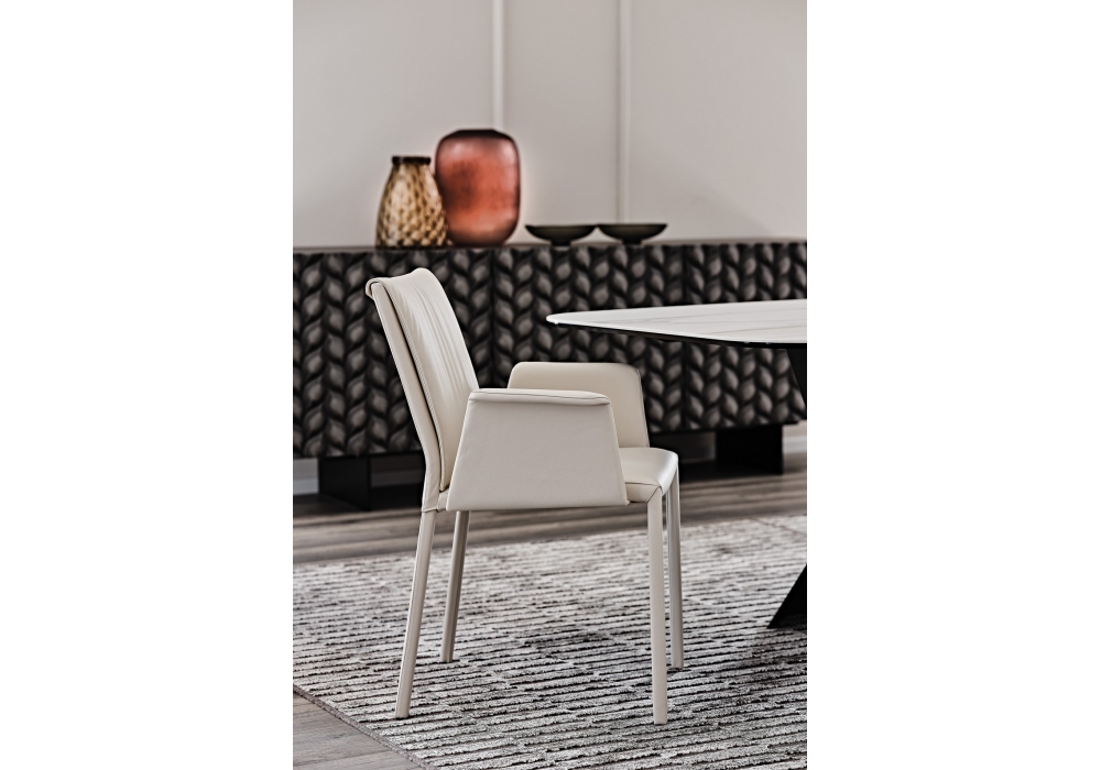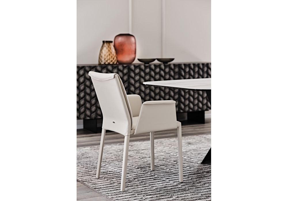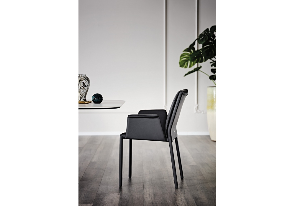 Italia designed by Paolo Cattelan for Cattelan Italia is a chair chair with or without armrests. Structure in metal. Covering in fabric, synthetic leather, synthetic nubuck, micro nubuck or soft leather.