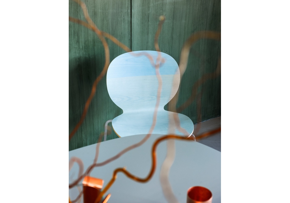 Kelly V designed by Claesson Koivisto Rune for Tacchini is a chair with shell in one-color or two-color stained ash. The base is in tubular metal, powder coated or chromed.