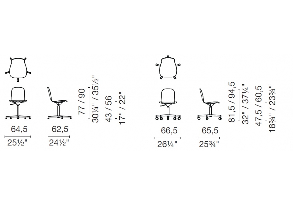 Tate Soft designed by Jasper Morrison for Cappellini is a chair with beech plywood shell upholstered in fabric or leather and 5-spokes metal base with feet or wheels. Available in different finishes.