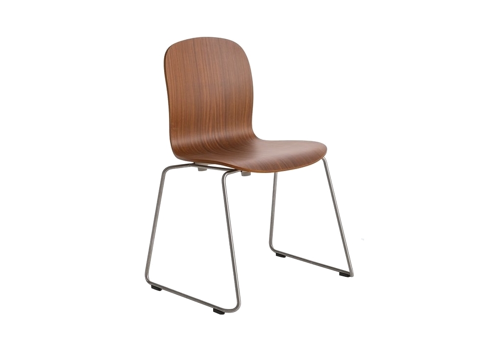 Tate Wood designed by Jasper Morrison for Cappellini is a stackable chair with beech plywood shell veneered in oak or mahogany and metal base with sled or 4 legs. Available in different finishes.