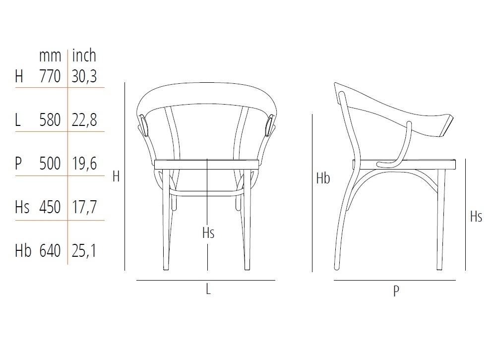 | Armrest height | • 64 cm |