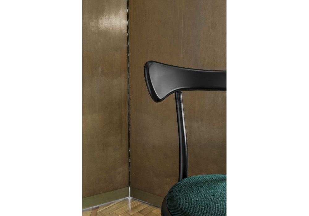 Caféstuhl designed by Nigel Coates for Gebrüder Thonet Vienna is a chair made of stained or lacquered beech wood, upholstered seat with upholstery available in different finishes.