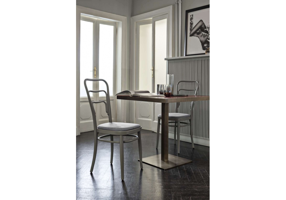 Vienna 144 designed by Gebrüder Thonet Vienna is a chair made of bent beech, available in different finishes. Padded seat with fabric or leather upholstery. Backrest available with or without padding.