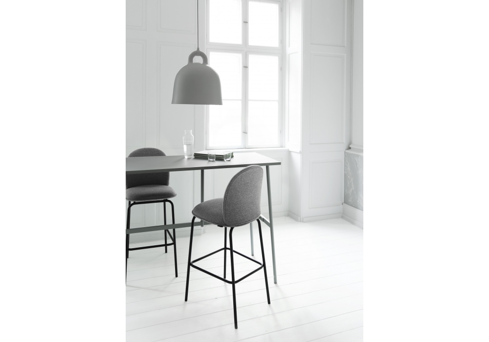 Ace designed by Hans Hornemann for Normann Copenhagen is a stool, with shell in plywood and PU foam, upholstered in fabric or leather in different finishes. The supporting structure is made up of four tubular feet, powder coated in black. Ace is available in two different sizes.