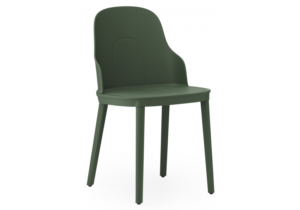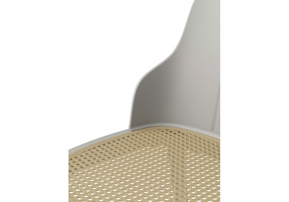 Allez, designed by Simon Legald for Normann Copenhagen, is a chair entirely structured in plastic material in the finishes; warm gray, gray, white, black or park green. Allez is available in two different versions, with seat in plastic material in the same finish as the structure, or with seat in ivory-colored molded wicker.