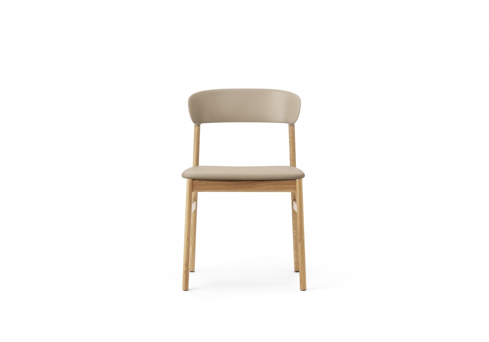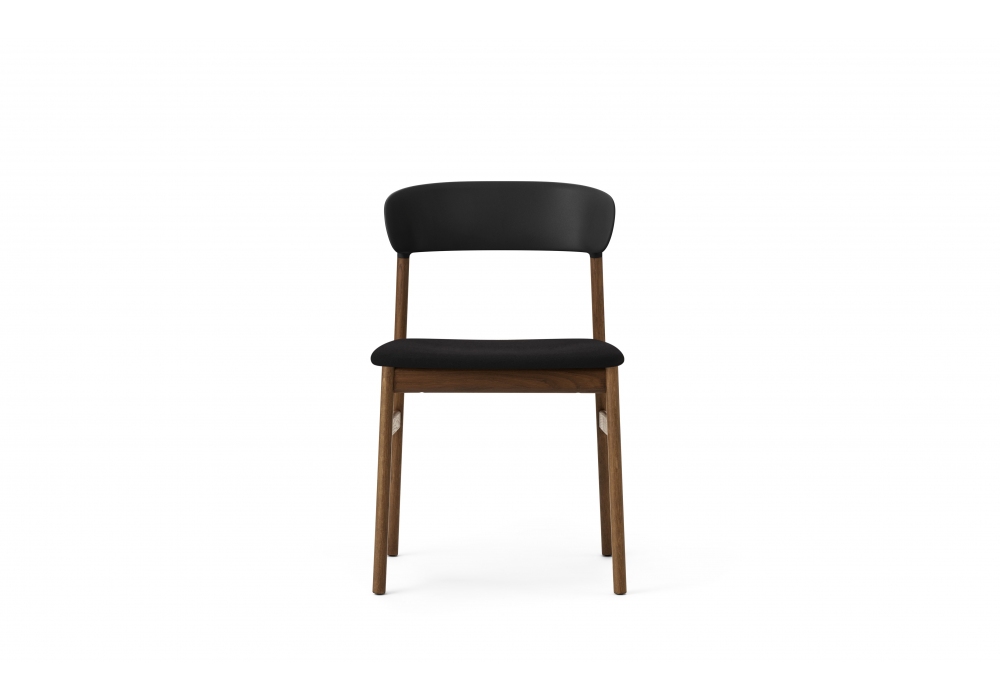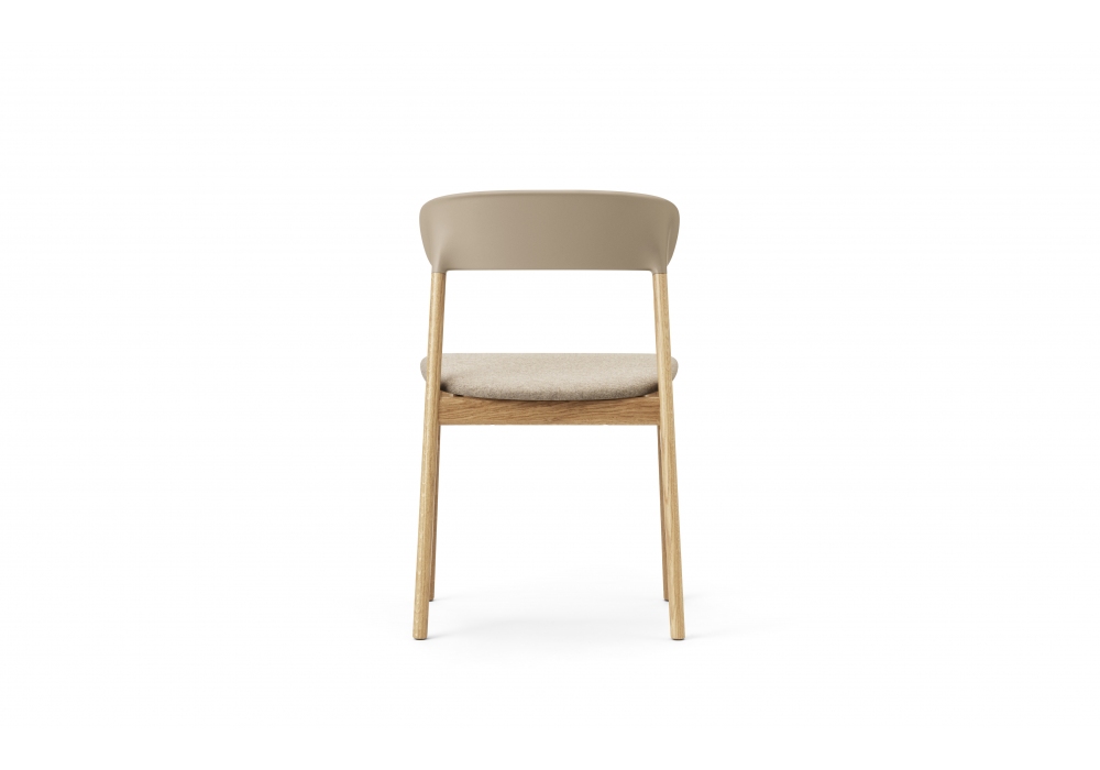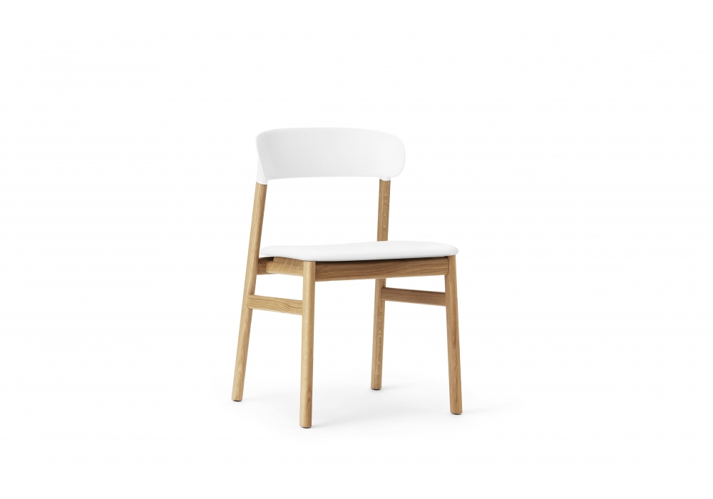 Herit, designed by Simon Legald for Normann Copenhagen, is a chair, structured in oak with polypropylene back and seat covered in leather or fabric in different finishes. Herit is available in two different versions, with structure and legs in oak or smoked oak.
