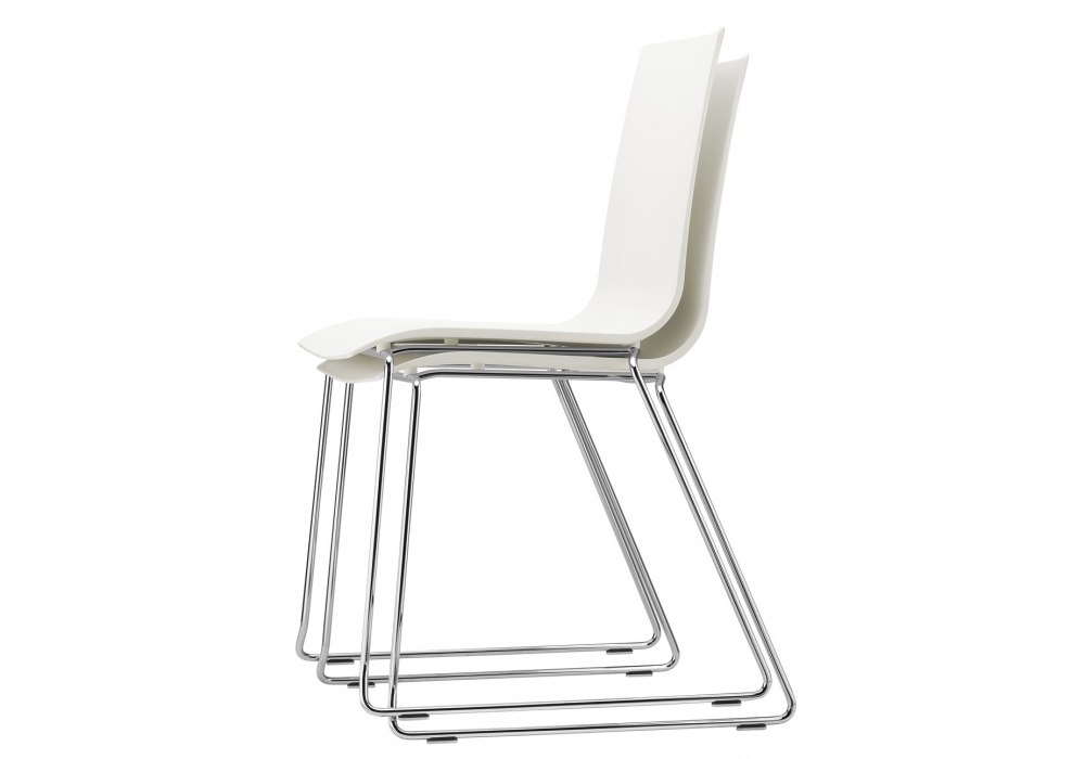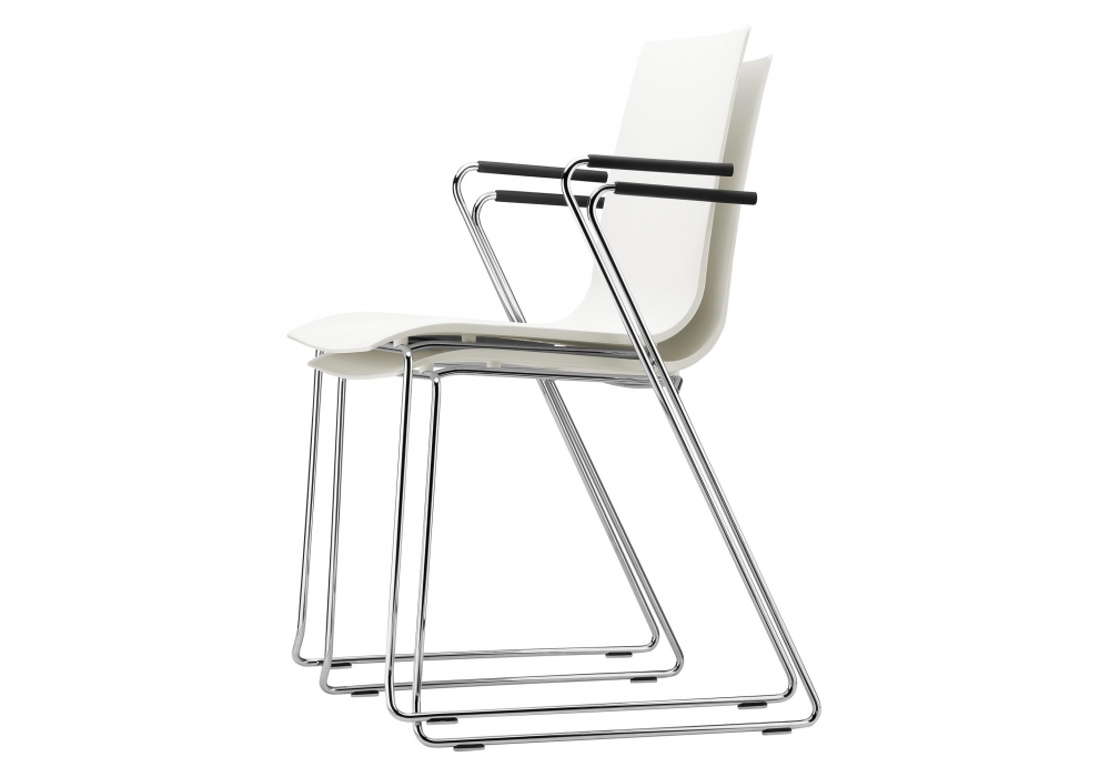 S 180 ST / FST designed by Delphin Design for Thonet is a stackable chair in steel wire with chromed rod frame, plastic feet. Shell in polypropylene in different colors. Available with or without armrests.