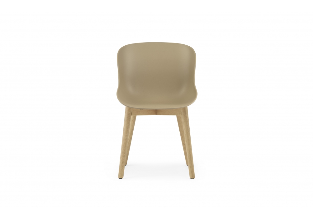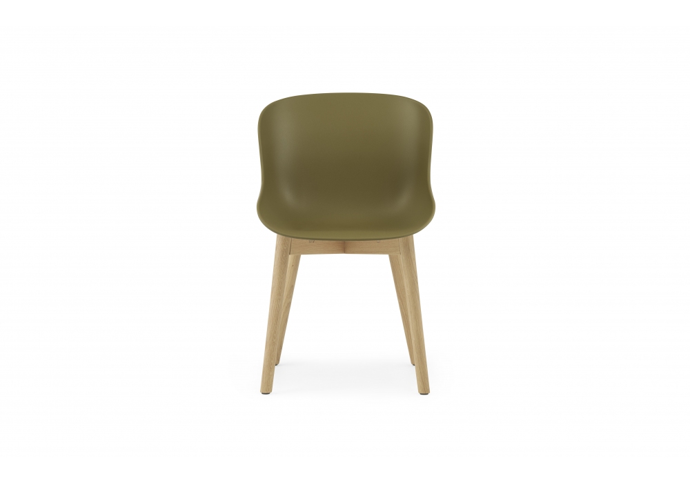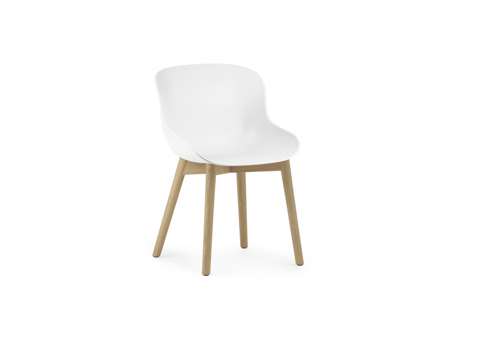 Hyg Wood, designed by Simon Legald for Normann Copenhagen, is a chair with a polypropylene shell and a supporting structure in oak. Hyg is available in the finishes; gray, black, white, sand or olive, and with legs in oak or black oak.