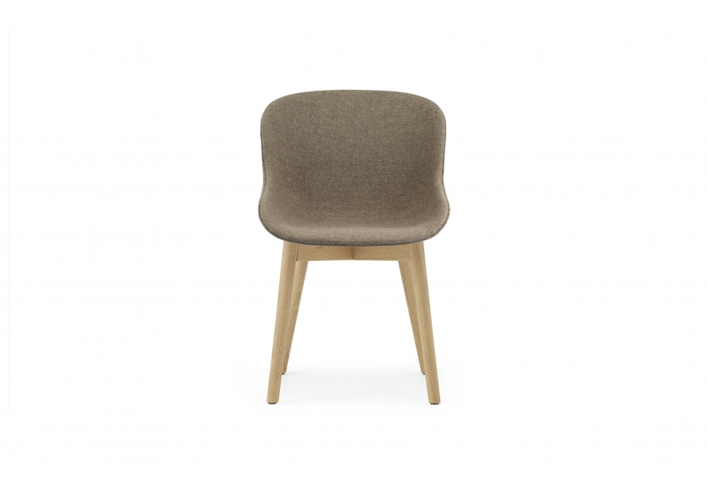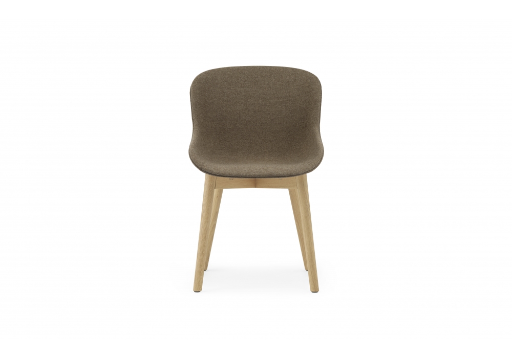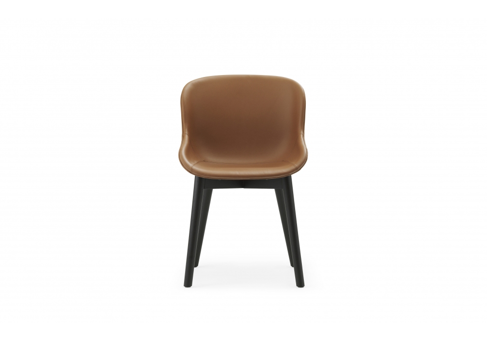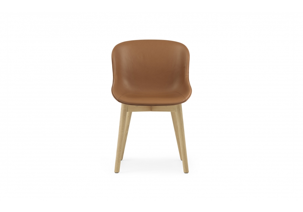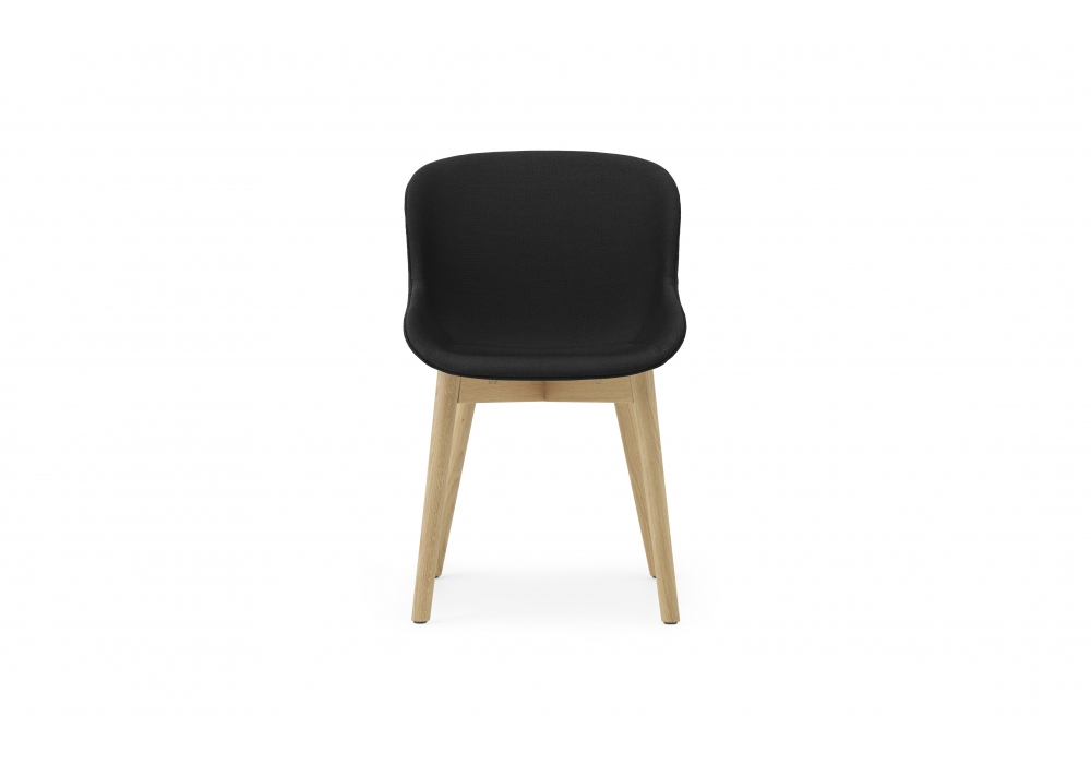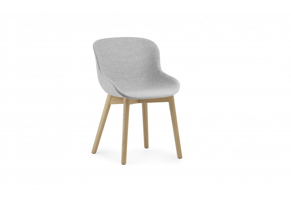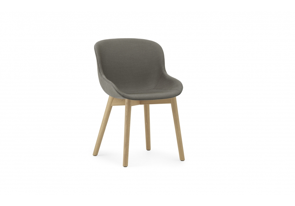 Hyg, designed by Simon Legald for Normann Copenhagen is a chair with shell entirely covered in leather or fabric in different finishes. The supporting structure is in oak in natural or black colors.
