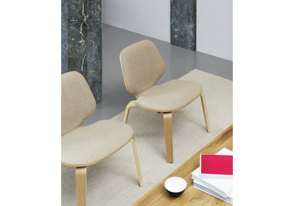 My Chair, designed by Nicholai Wiig Hansen for Normann Copenhagen is a chair entirely structured in oak, black ash or walnut. Back and seat are a single wooden body, padded with PU foam and covered in leather or fabric in different finishes.