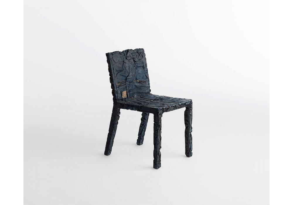 RememberMe designed by Tobias Juretzek for Casamania & Horm is a molded chair, mixing jeans, or jeans and cotton t-shirt, with a special hardening resin.