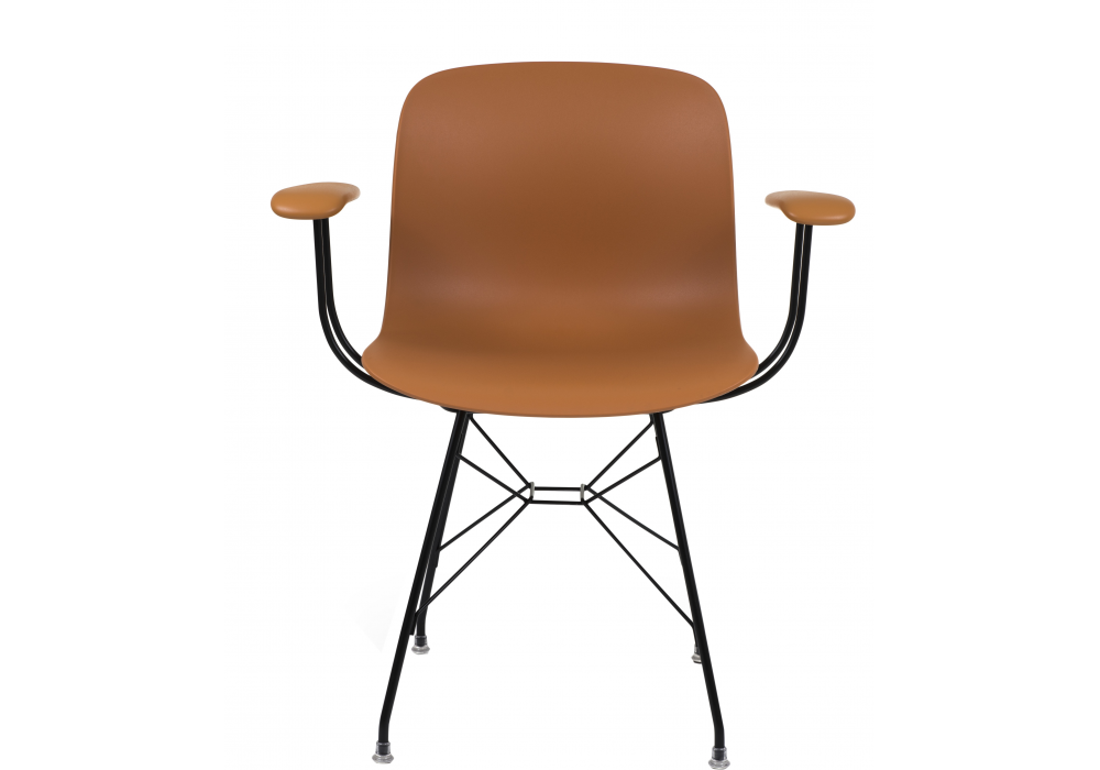 Troy Wireframe designed by Marcel Wanders for Magis is a chair with armrests and seat in polypropylene, in different colours. Structure in gilded, copper-plated or painted steel rod.
