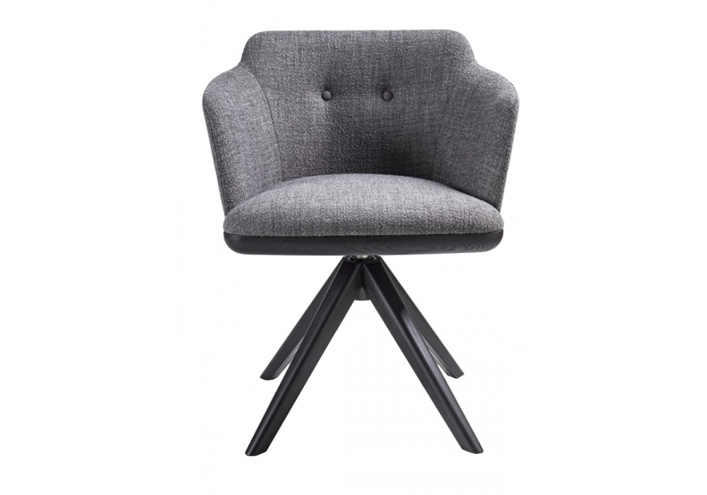 Celine designed by Carlo Ballabio for Porada is a swivel chair with armrests made with solid ash base with pewter gray finish metal inserts and fabric upholstery. Possibility to order tone-on-tone or contrasting backrest and buttons.