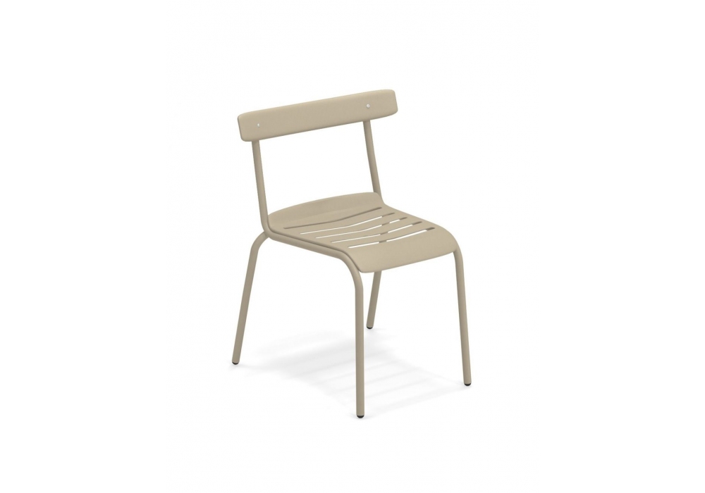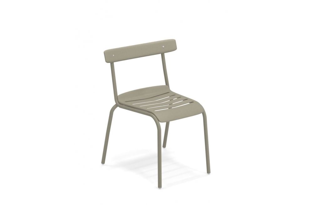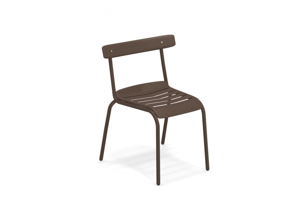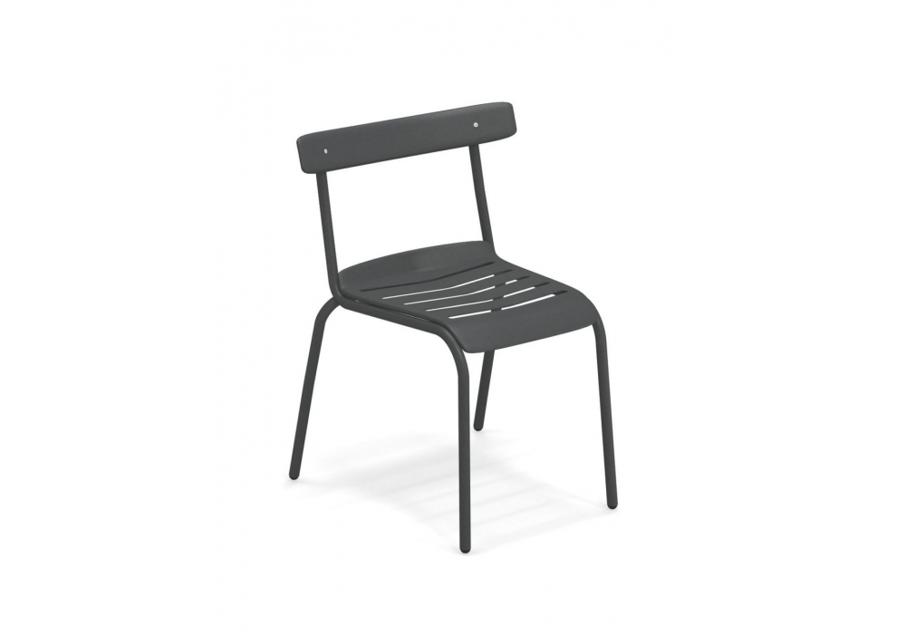 Miky designed by Florent Coirier for EMU is a steel chair, inspired by bistro seats revisited in a modern key, it can be used both outdoors and indoors. Available in different finishes.