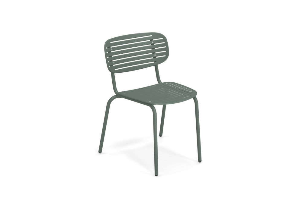 Mom designed by Florent Coirier for EMU is a steel chair, inspired by traditional Japanese trays, it can be used both outdoors and indoors. Available in different finishes.
